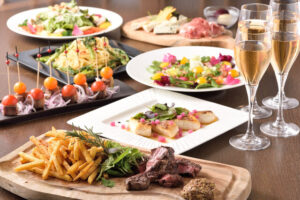 サラダ&フルーツビュッフェに加え、お料理9品、アルコール含むフリードリンク2時間